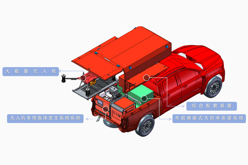 高空灭火救援快反系统集高效灭火、空中作战时间长,以及物资抛投、远距离破窗、喊话搜救、应急照明、自动避障、精准锁定火源、多角度控制火点等功能于一体。该系统采用模块化设计理念,搭载自研高层无人机灭火系统,可适应不同场景下的应用需求,是全新一代消防救援装备。能实现3分钟快速展开,对150米高空火灾进行大跨度全方位扑灭,有效解决超高层建筑火灾消防救援难题;同时,即便在狭窄道路、消防救援通道不畅通等复杂环境下,也能开展作战救援,助力提升消防人员救援响应速度与灭火效率。